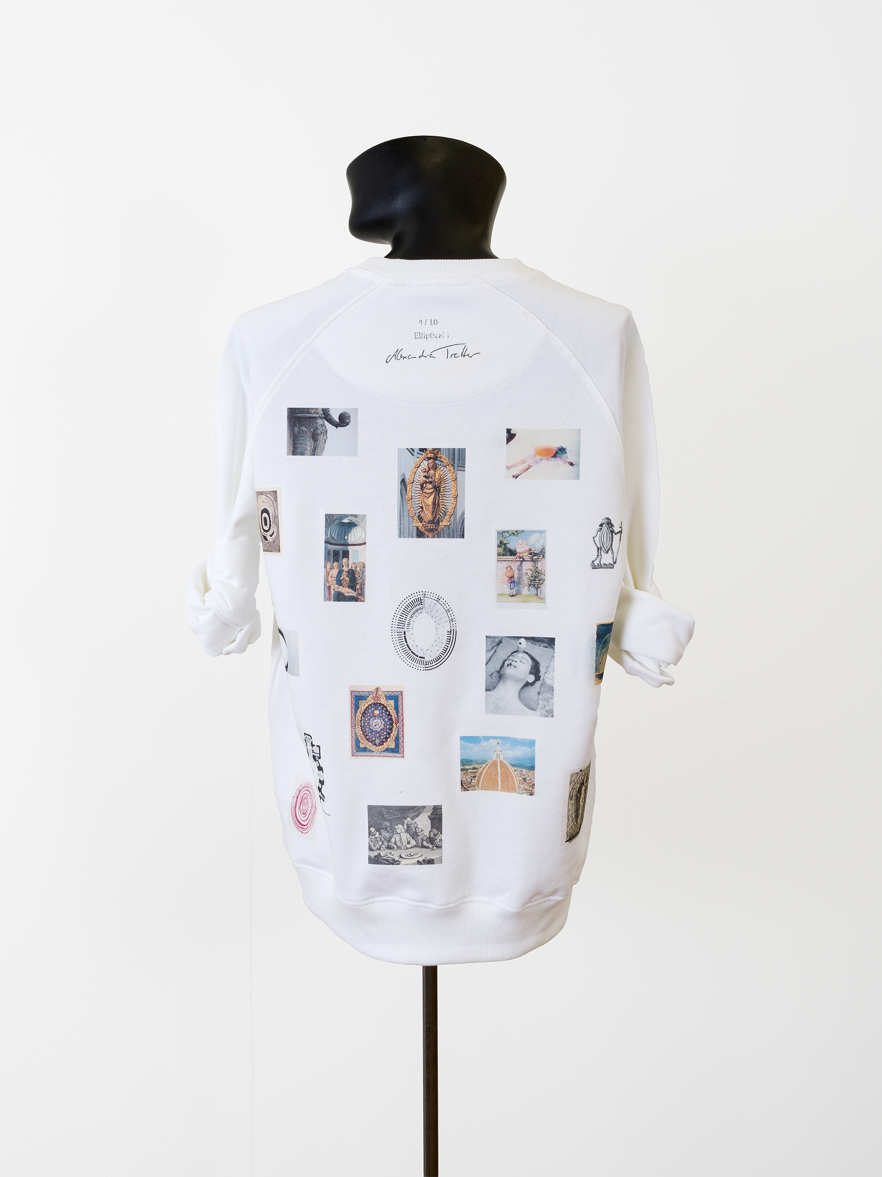 Alexandra Tretter, Elliptical I, 2021, Transfer Paper on Sweatshirt, Edition of 10 / Photo: CE / Courtesy: the Artist and Kirchgasse Gallery