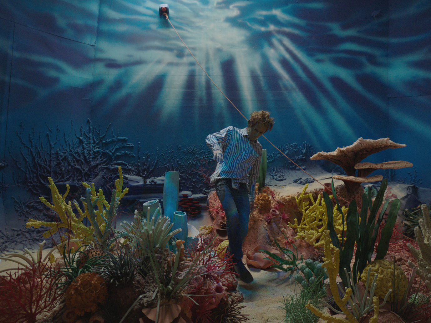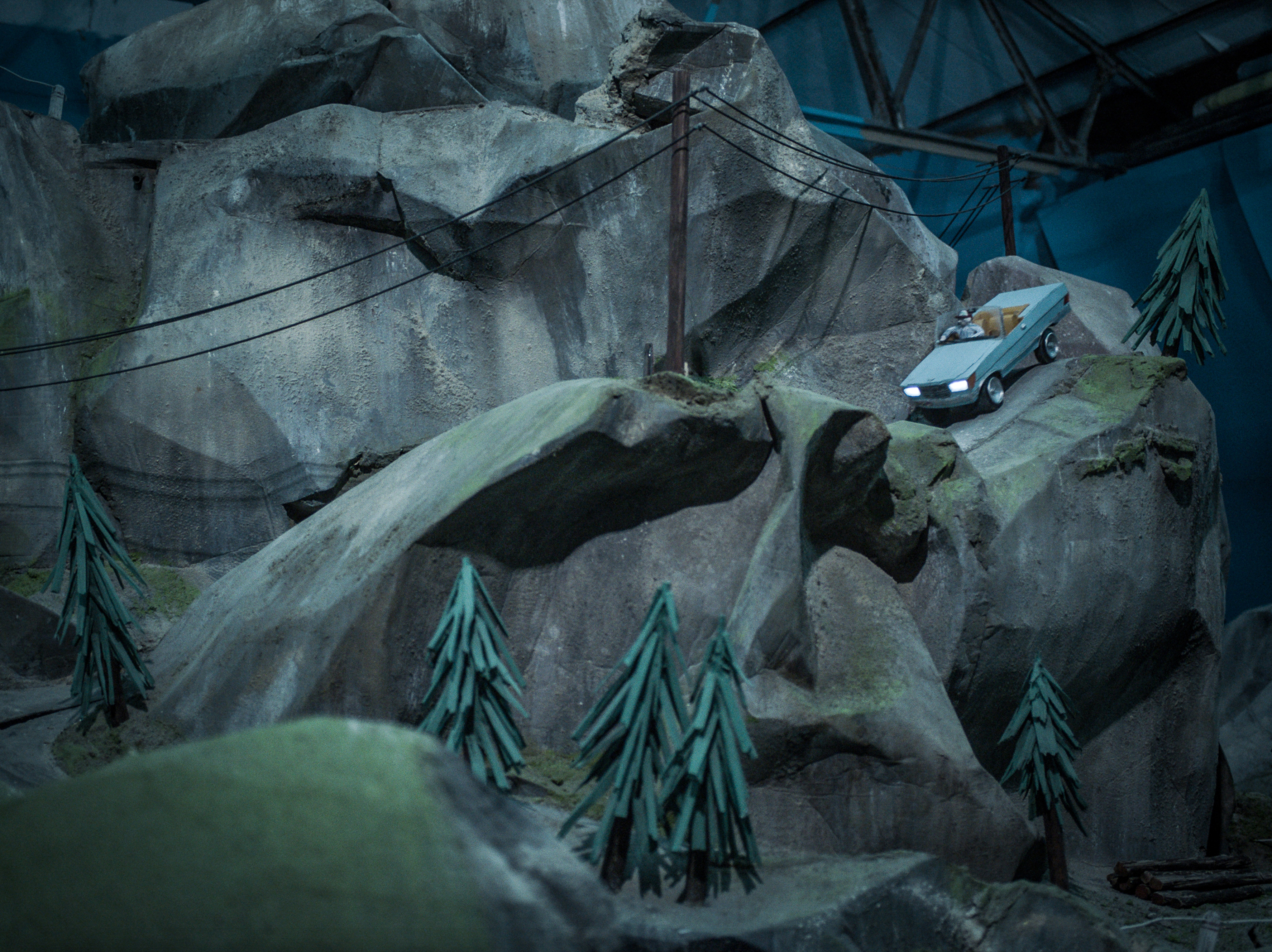 be in his studio. He thinks travelling is much too dangerous! With his films, card board sets and polystyrene objects he constructs a sprawling universe—in which his figures and the viewers become equally entangled.