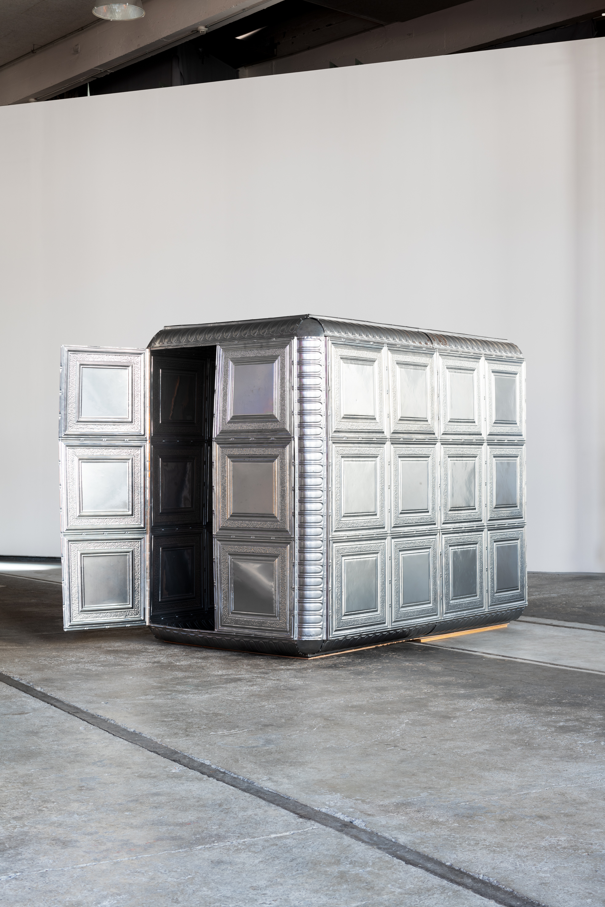 The exhibition Città irreale combines large-scale and sculptural works from the collection of the Kunstmuseum St. Gallen which relate to a social context. The architectural modules range from elementary dwellings (Büchel, Masüger) to aspects of global mobility (Gramsma) to an environment composed of objects from everyday life (Stockholder).