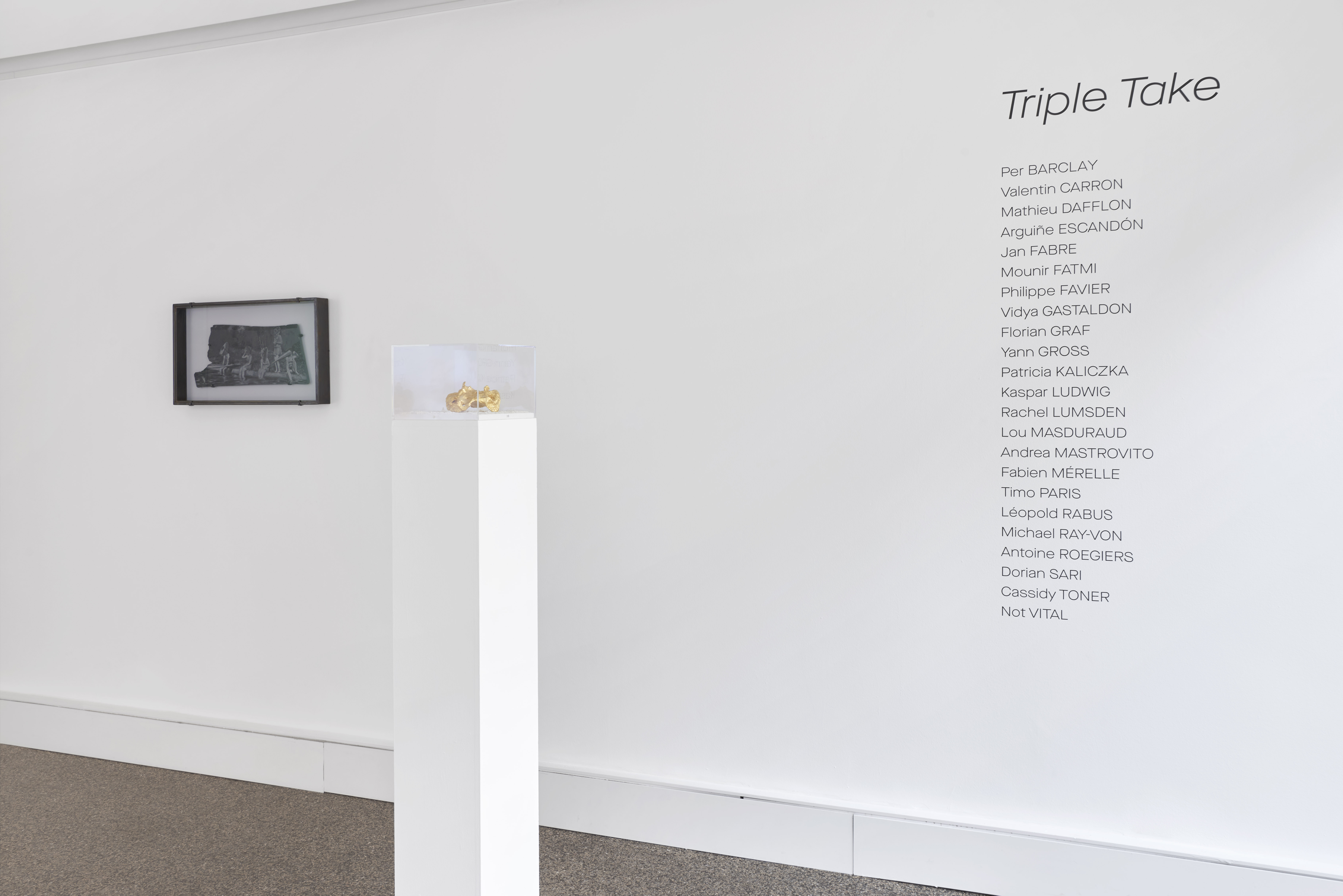 Andrea Mastrovito, Antoine Roegiers, Arguiñe Escandón, Cassidy Toner, Dorian Sari, Fabien Mérelle, Florian Graf, Jan Fabre, Kaspar Ludwig, Léopold Rabus, Lou Masduraud, Mathieu Dafflon, Mounir Fatmi, Not Vital, Philippe Favier, Rachel Lumsden, Valentin Carron, Vidya Gastaldon, Yann Gross, Patricia Kaliczka, Timo Paris, Michael Ray-Von
